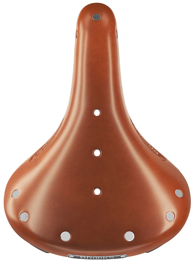 - Le logo emblématique de Brooks orne la plaque arrière et le gaufrage de chaque côté de la selle
